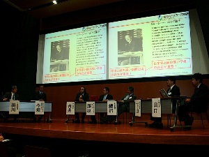 | パネルディスカッションの様子 | パネルディスカッション 話題1 「天文学は社会とかかわっているか? 古代から現在社会までの科学技術文化の源流」 吉井、藤原、他 |