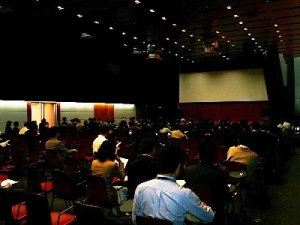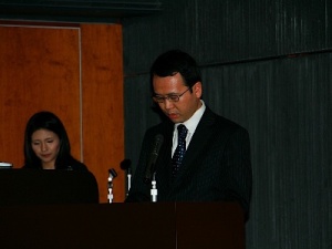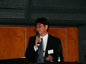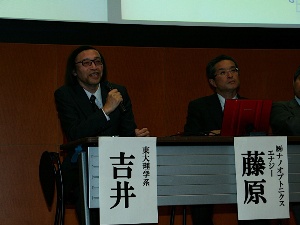 | 東京大学工学研究科と株式会社ナノオプトニクス・エナジーとの共同研究開始に関する記者会見の様子 | シンポジウム会場内の様子 | 司会 : 東京大学大学院理学系研究科 横山准教授 |