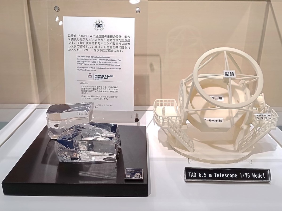 TAO In the Science Gallery of the Graduate School of Science and Faculty of Science, the University of Tokyo (located in Building 1 of the Faculty of Science, Hongo Campus), we started the exhibition of borosilicate glass (E6 by OHARA Inc.) used for the primary mirror of the 6.5-meter aperture TAO telescope and...