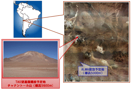 OverviewThe Institute of Astronomy, School of Science, University of Tokyo, is promoting TAO (The University of Tokyo Atacama Observatory) project to construct a 6.5 m infrared telescope with world-class performance in Atacama, Chile. We will install this big telescope at 5640 m altitude, the highest astronomical site on the surface of the Earth, and make observations to investigate the origins of galaxies and planets. 5640 m altitude; the highest astronomical site in the worldWe are planning to build the TAO telescope at an altitude of 5640 m; the highest astronomical site in the world. This extremely dry site has less water vapor in the atmosphere above it than any other location on Earth; since water vapor absorbs infrared rays from the universe, this unique condition, together with its clear skies almost every day, make this site one of the best places for cosmic infrared observations. Moreover, Atacama, Chile is located in the southern hemisphere, so we can observe astronomical objects that are never visible from the northern hemisphere.