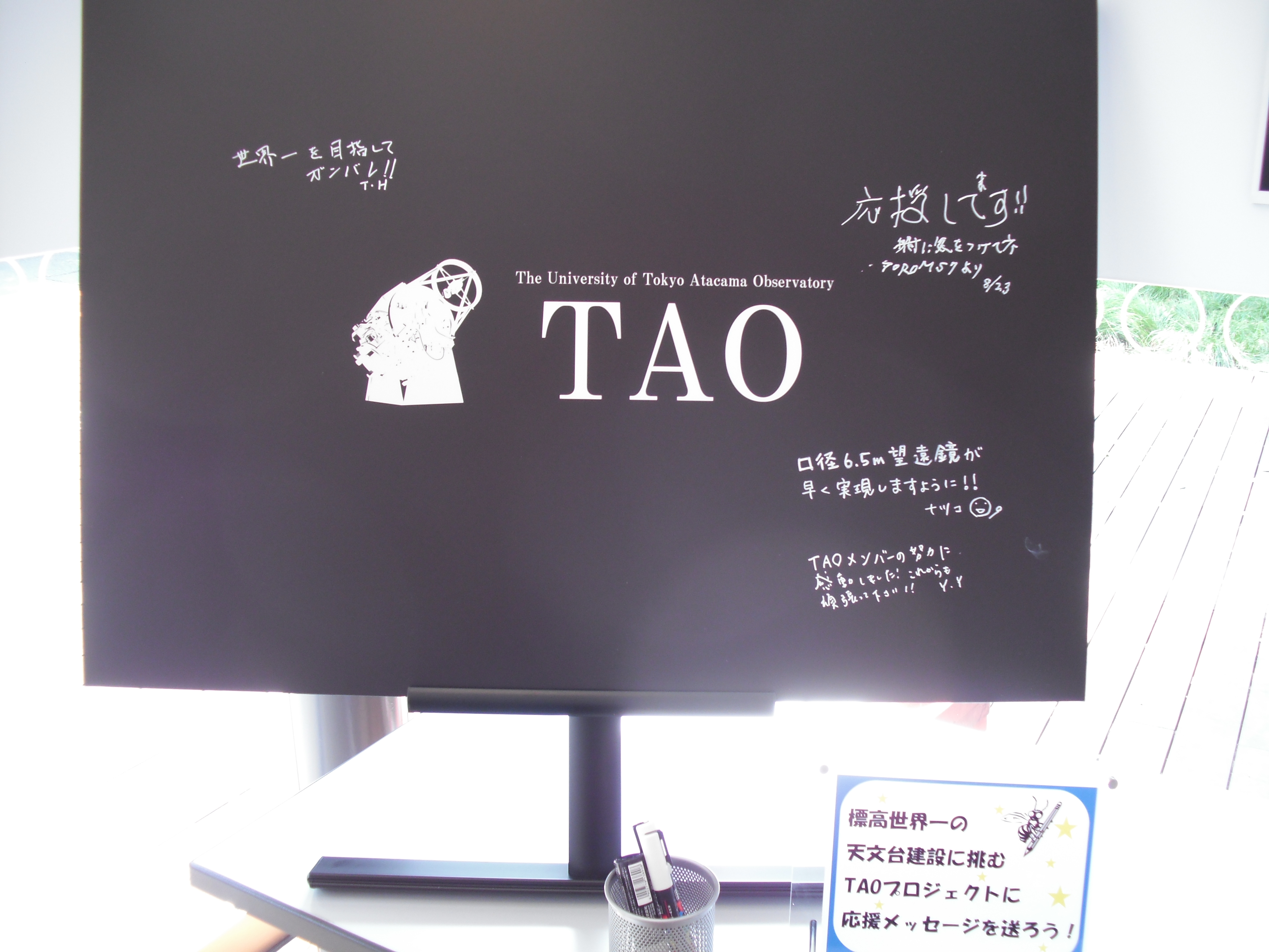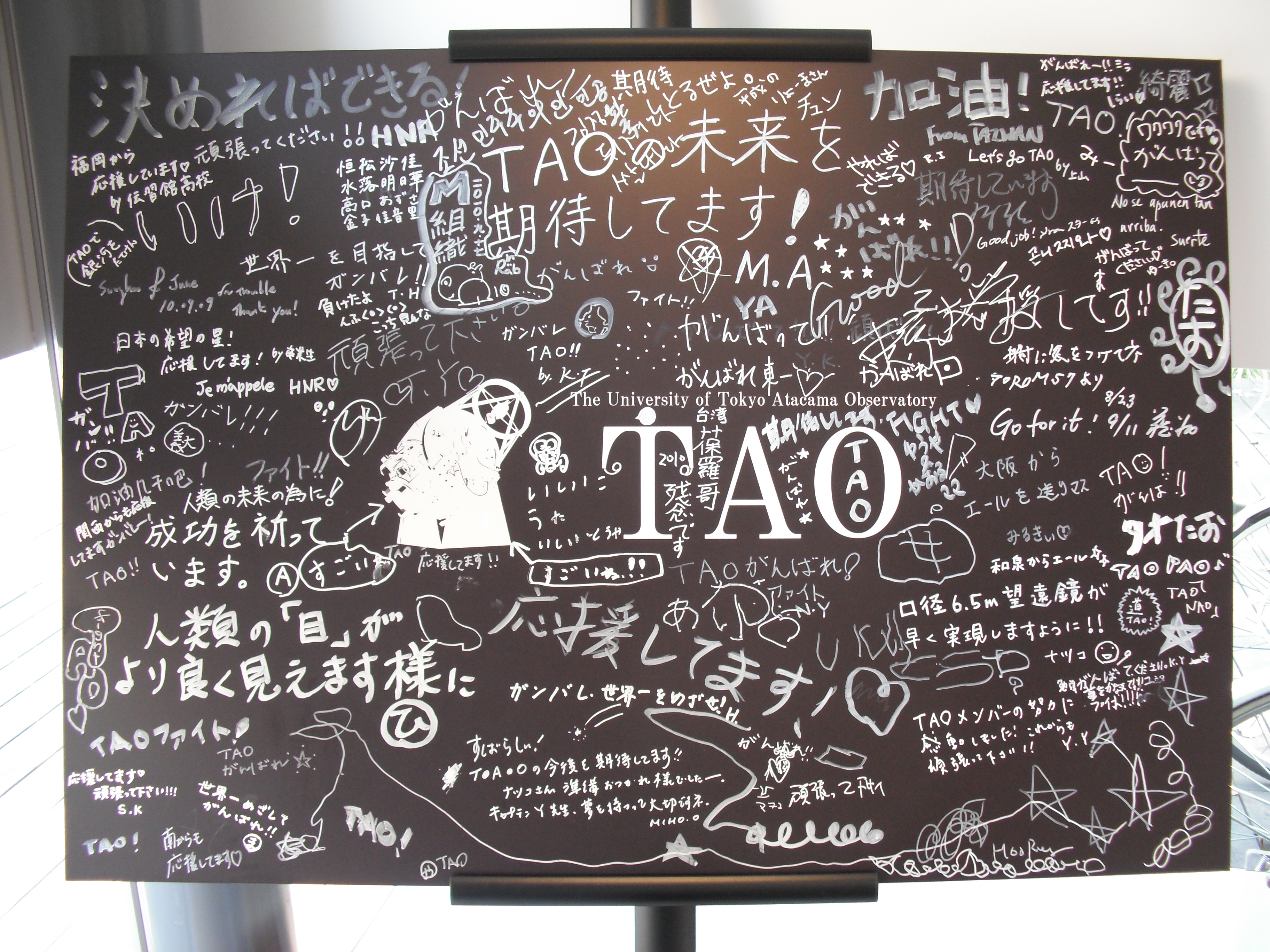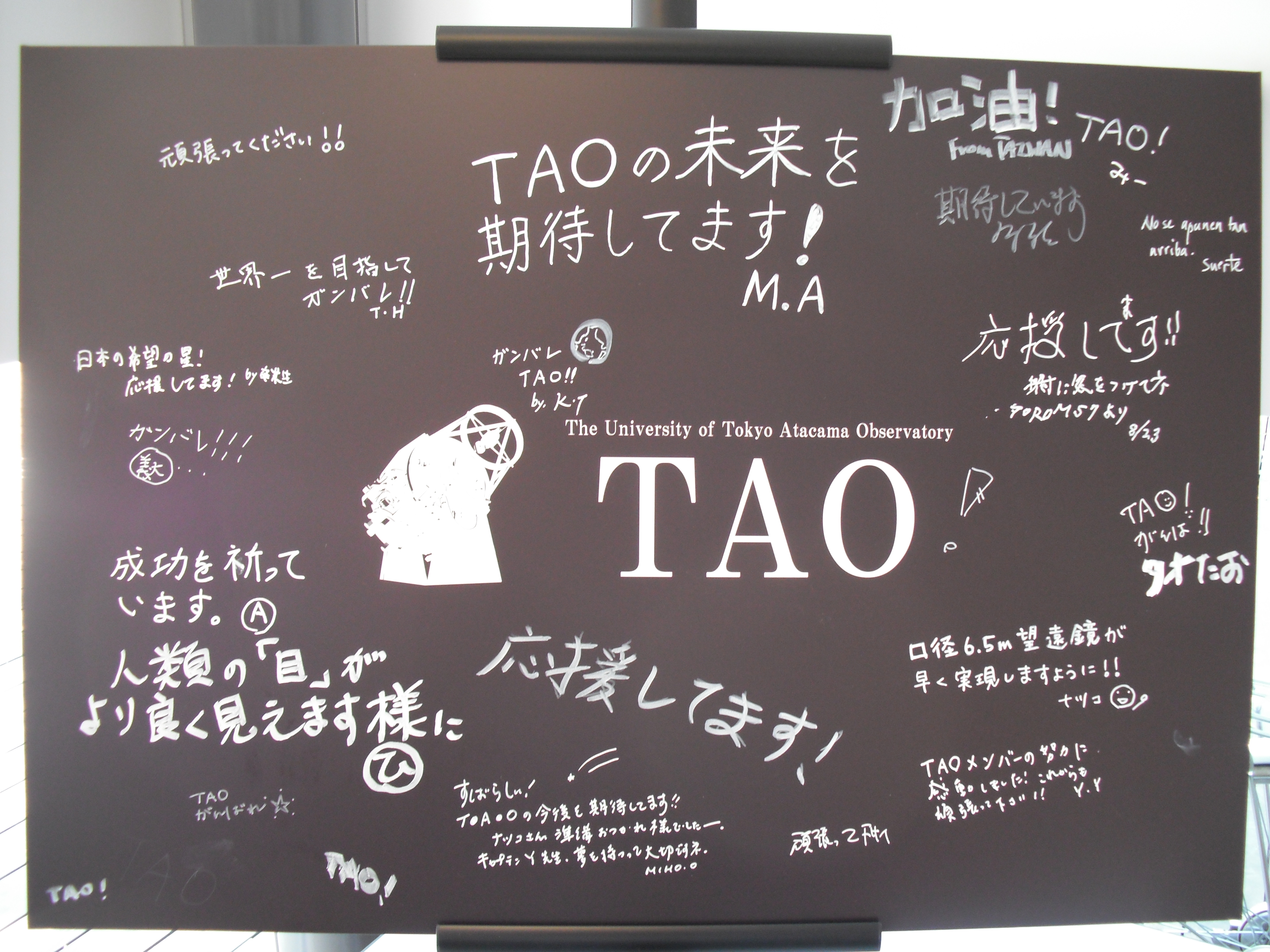 On 23 August, we opened a new exhibition booth of the TAO project at the Communication Center, the University of Tokyo, where we set up a message board. We have been getting a lot of supporting messages from everyone who stopped at the booth, including children, people from foreign countries, and so on. We really appreciate it!
