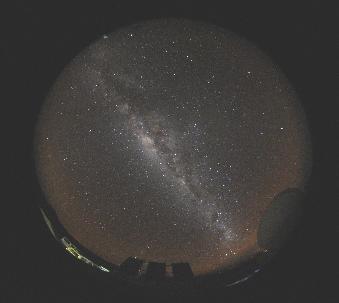 | ▲The fish-eye view of the milky way seen from the summit of Mt. Chajnantor |