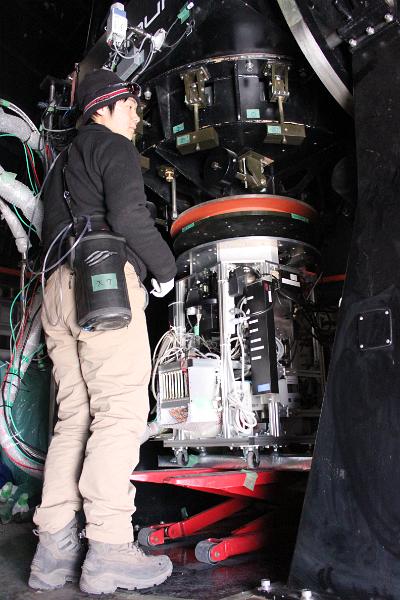 Many large-scale deep surveys have revealed that the star formation activity in the universe is more strenuous in past days and that Ultra-Luminous and Luminous Infrared Galaxies (U/LIRGs) play a main role in the past star formation activities. However, the properties of U/LIRGs and their star formation activity are still unknown. This is because the detailed observations toward distant galaxies (red shift z>1) are difficult for current technology. This work aims to understand galaxy evolution by revealing the detailed star formation activity in nearby LIRGs (z<0.1) enough close to probe inner structures. Paschen-alpha (1.875 um) line, a strong hydrogen-recombination line, is appropriate to probe the star formation activity of U/LIRGs. It is because the line is a direct indicator of star formation and robust over dust extinction. However, the line is difficult to observe from ground-based observatories because of the severe atmospheric extinction in that wavelength region. Atacama Near InfraRed camera: ANIR is a near-infrared camera on the miniTAO 1-m telescope at the summit of Co. Chajnantor in Chile (5640-m altitude). The Paschen-alpha line can be stably observed at the site because near-infrared atmospheric window is extended by the low PWV (precipitable water vapor) environment (about 0.5 mm) given by the high altitude and dry climate. In addition, as frequent clear nights (80-90%) and good seeing (median: <0.8arcsec) are available, the site is very suitable for infrared observations. In this thesis, the local LIRGs (2800 km/s< cz< 8100 km/s), whose Paschen-alpha lines are observable with the N191 filter (1.9 um) in ANIR, were surveyed by ANIR. Finally, thirty-eight LIRGs (and quasi-LIRGs) were imaged in Paschen-alpha. The star formation activity veiled by dust was directly resolved by the obtained images, and the relation between the star formation rate and the morphology of galaxies, evaluated by concentration index, was derived. In the relation, two separated modes were confirmed clearly. One is "compact mode", the distribution of stars and star forming regions is alike with elliptical galaxies, and the other is "normal mode", the distribution of stars is alike with spiral or irregular galaxies. The origin of the two different modes will be investigated in future works. |