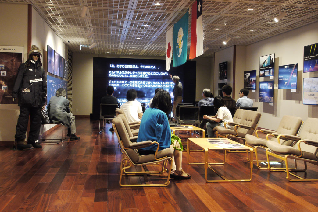 The live broadcasting was carried out connecting to the TAO members observing at Atacama by TV conference system. Through the interaction between the venue and researchers on the opposite side of the earth, participants could know the state of the world's highest astronomical observatory. |