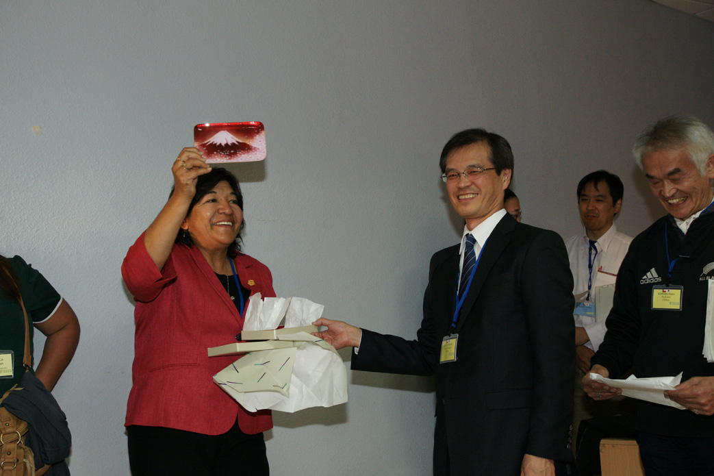 We had a interacting event at the city of San Pedro de Atacama on November 5, with more than 70 attendants including the mayor Ms. Sandra Berna and 18 representatives of the city. A dish decorated with a drawing of Akafuji (Mt. Fuji in red) and cherry blossoms were given to the mayor from Prof. Hiroaki Aihara, dean of Graduate School of Science, and we deepened exchanges.