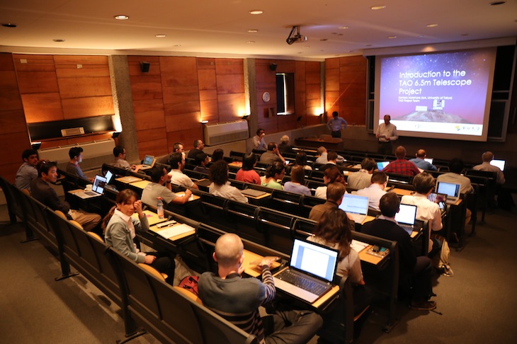 TAO/AIUC Joint Workshop was heldVarious components for the TAO 6.5m telescope are now under development, targeting at the first light in 2018. In addition, a near-infrared camera/spectrograph SWIMS and a mid-infrared instrument MIMIZUKU are being developed at Mitaka campus, and now under final performance verification phase. These activities of the TAO project is supported by various institutes such as National Astronomical Observatory of Japan (NAOJ) and Institute of Space and Astronautical Science of Japan Aerospace Exploration Agency (ISAS/JAXA) in Japan, University of Arizona who fabricated the mirrors, Cornell University, and Caltech in USA, and University of Chile, Pontifical Catholic University of Chile (PUC), and University of Concepcion in Chile, through joint research and development activities. Recently, we have started collaboration with Catholic University of the North in scientific observation plans and with University of Antofagasta in public outreach. PUC is one of such institutes, where Dr. Shintaro Koshida worked as a researcher for a development of infrared instruments (please take a look at a previous article ). On November 19, 2014, a joint workshop of TAO and Centro de Astro-Ingenieria UC (AIUC) was held at the campus of PUC. This is the first TAO workshop held at a foreign country, and as many as 52 researchers have participated from various institute in Chile, showing the large interest and expectation for the TAO project. Subjects of the presentations had large diversity from scientific results and future observational plans, to instrument developments, and active discussions were carried out to deepen the relationship between the TAO project and Chilean institutes. This workshop was held in connection with the inauguration ceremony of the base facility at San Pedro de Atacama on November 21, and as a cultural exchange activity, a concert by "Orquesta AurorA" was also held at PUC on Novermber 19 hosted by Japanese embassy at Chile (co-hosted by the University of Tokyo).