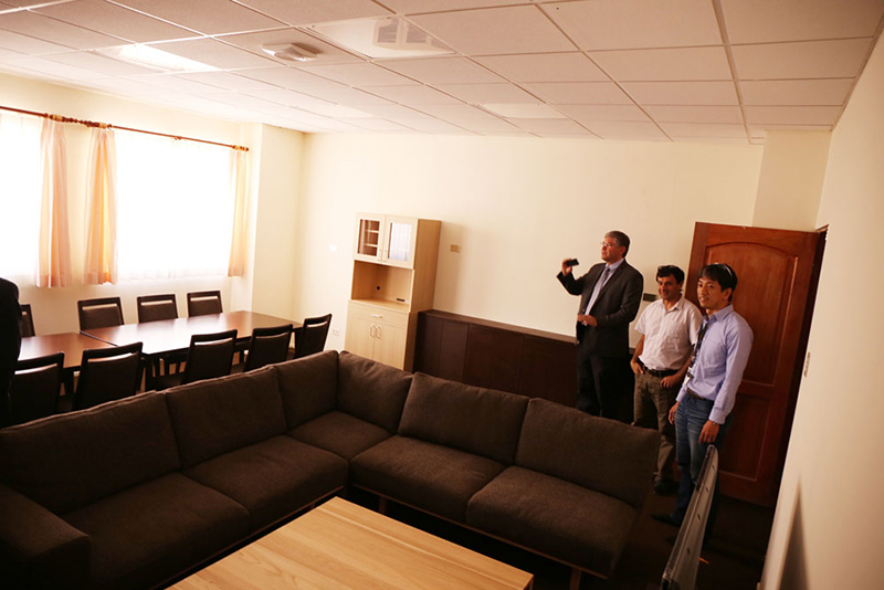 At the facility tour that followed, we guided laboratories, accommodation rooms, a kitchen etc., and a spectacular view of the city of San Pedro and the mountain of Co. Chajnantor from the rooftop of the completed research building. The facility has an area of about 14,000 square meters as a whole, and in a convenient location with easy access to the city center of San Pedro city on foot. From the participants, there were voices of praise that it was a comfortable research building as well as high quality facility for research. For further information of an outline of construction and scenery of the Base Facility, please refer to the previous article "TAO Base Facility Close to Completion".