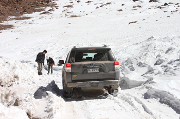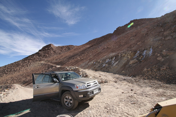 We have chosen TOYOTA cars as our "partner" for about 15 years. And the visit by the members of the TOYOTA 5 Continents Drive project was a delightful event for us to let many personnel in TOYOTA know the fact that there are Japanese end users at 5640m altitude on the other side of the earth. Also, it was a great opportunity for us to deepen ties with TOYOTA's technicians/engineers. Contents