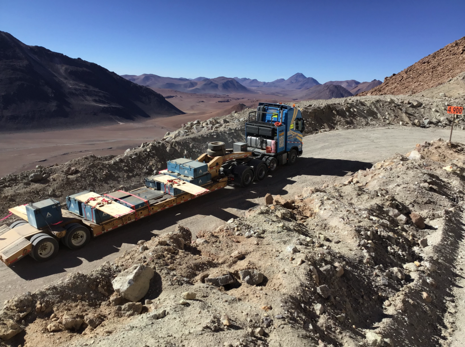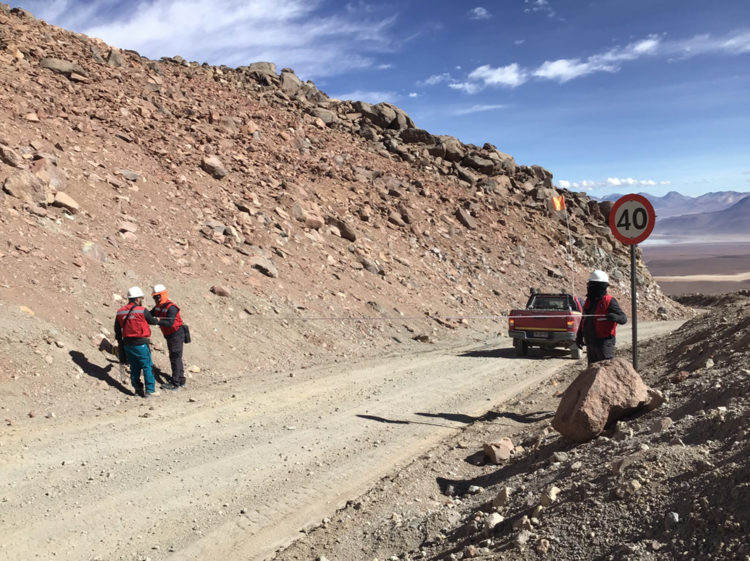 Trial run for heavy and wide components on TAO summit access roadMost important events in construction phase of TAO project are construction of the telescope, installation of mirror coating chamber to the ceiling of support building, and installation of primary mirror to the telescope. To accomplish these tasks, these components have to be transported to the 5,640m summit of Cerro Chajnantor. They are the largest structures of TAO facility both in size and weight which must be handled very delicately. Then this trial run is one of the important milestones in TAO project. As failure is not acceptable in actual transportation, certainty and safety must be confirmed in advance with trial run using dummy cargo and weight. Before the trial run, a careful preliminary check of road condition is also conducted. There are many items to be checked: ensure of maximum road width (7.5m), securing the turning radius in the curves to available the trailer to turn, critical bumps against vibration, enough power of the trailer, enough space to ensure the safety of watchdogger. There are more than 30 checkpoints of the road width from 5,000m yard to the summit. They were measured and checked by hand one by one. Areas of concern will be widen the road or be marked to adjust the height of the banks before trial run.