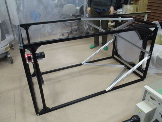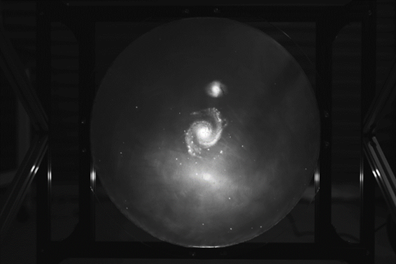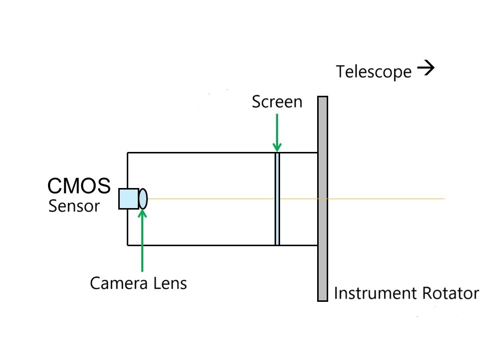 Development of a Screen camera for optical adjustment of the TelescopeThe optical system of TAO 6.5m Telescope consists of three mirrors. They are the biggest primary mirror of 6.5m diameter, the secondary mirror with a diameter of less than 1m, and the third mirror which folds back the light to the Nasmyth focus. In order to form a clear image of astronomical objects through the telescope, these mirrors must be aligned in the designed position and angle. To give a familiar example, imagine that you try to magnify an object using a magnifying glass in your hand. If the glass position shifts, the object you want to see cannot be seen through the lens, or if the angle of the lens is crooked, the image of the object will be distorted. Conversely, the shifted or distorted image through the lens means that the position or angle of the lens is misaligned, and therefore we can adjust the position or angle of the magnifying glass to see a clear image. We wish we could adjust the telescope mirrors in the same way, but there is one problem. As the area which the TAO telescope makes astronomical images (the focal plane) has a very large diameter of 55cm, it is difficult to capture the entire focal plane at the same time. Although this is possible by providing a huge lens and a large number of CCDs or CMOS sensors, it is not realistic because of the enormous cost involved. Therefore, we thought of placing a light-scattering screen on the focal plane of the telescope and capturing images of astronomical objects projected on the screen with a camera (Fig. 1). This system (Screen camera) can capture the entire field of view of the telescope without big lens or many detectors, and it can be realized with one commercially available camera lens and CMOS sensor set. There is concern that passing the screen will reduce the amount of light and obscure fainter stars, but thanks to the light-gathering power of the telescope, calculations show that up to 13th magnitude stars can be seen, which is enough to adjust the telescope mirrors. Experiments have confirmed that blurring of the celestial image by the screen is small. Thus, we can quickly adjust the rough position and angle of each mirror of the telescope using the screen-camera. Then, precise adjustments are made to each mirror using a detail camera to complete the adjustment of the telescope's mirrors. Fig. 2 shows the overall view of the screen camera produced. The CMOS sensor with camera lens is on the left side, the screen is on the right side, and the further right side connects to the telescope instrument rotator. To visualize what the astronomical image would look like when projected, we used a projector to project an image of the galaxy from behind the screen on a trial basis, as shown in Figure 3. The image of the galaxy was well visible from the camera side and was also captured by CMOS through the camera lens (Fig. 4). We could confirm that this system worked as a screen camera and could be used to adjust the telescope mirrors. After adjustment of the telescope, we will be able to take beautiful images of wide field of view such as Fig. 4. We look forward to taking astronomical images with TAO 6.5m Telescope.