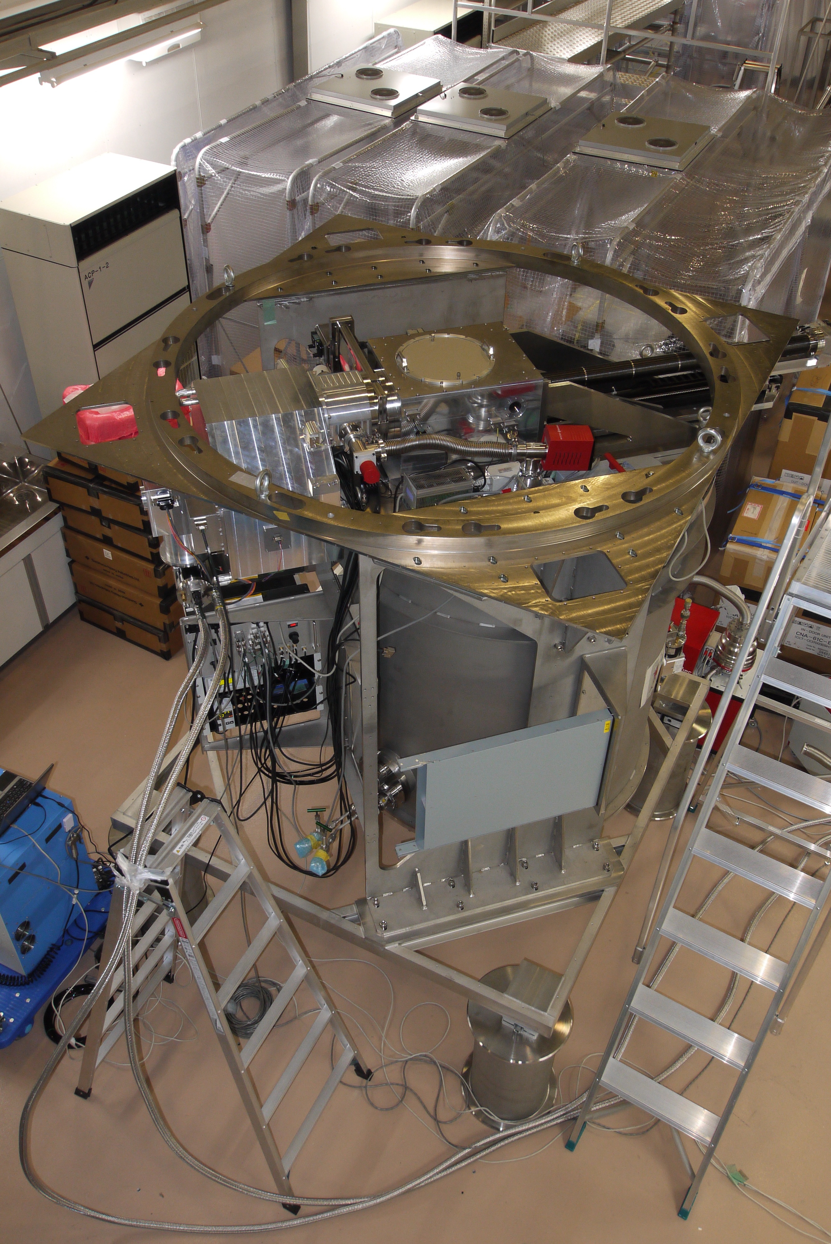 光学系や検出器を真空・低温下に維持するメインデュワー、そして装置を支える支持構造や周辺機器で構成されます。