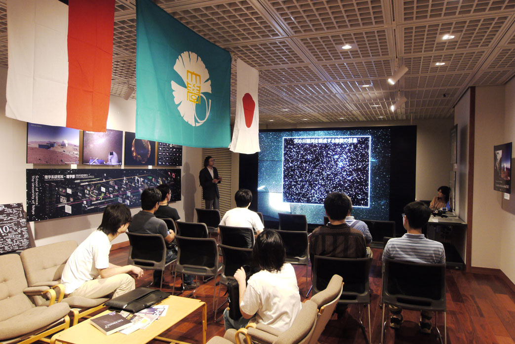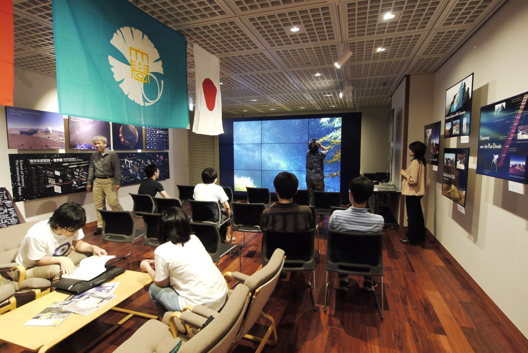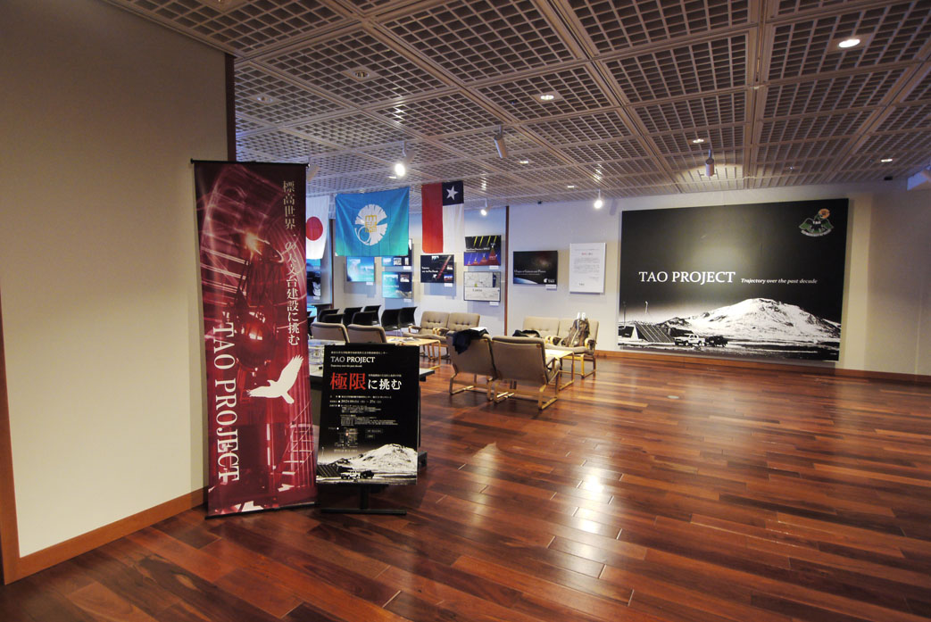 10月1日~27日、東京大学伊藤国際学術研究センター地下1階ギャラリー2にて、TAOプロジェクトの展示・講演会が開催されました。180インチ液晶パネルでの動画上映、miniTAO望遠鏡で撮られた美しい天体写真などの常設展示に加え、週に1回、南半球の星空を紹介する講演会とアタカマで観測中のTAOメンバーとのライブ中継、TAO天文台から見える星空をバーチャル体験できるイベントが行われました。