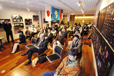 180インチ液晶パネルでの迫力のある動画上映の他、miniTAO望遠鏡で撮られた美しい天体写真やアタカマの環境、観測の雰囲気を実感できるパネルなどを展示しました。会場はTAOのパンフレットや関連書物、天体写真集などをじっくり閲覧できるサロンスペースとして利用されました。