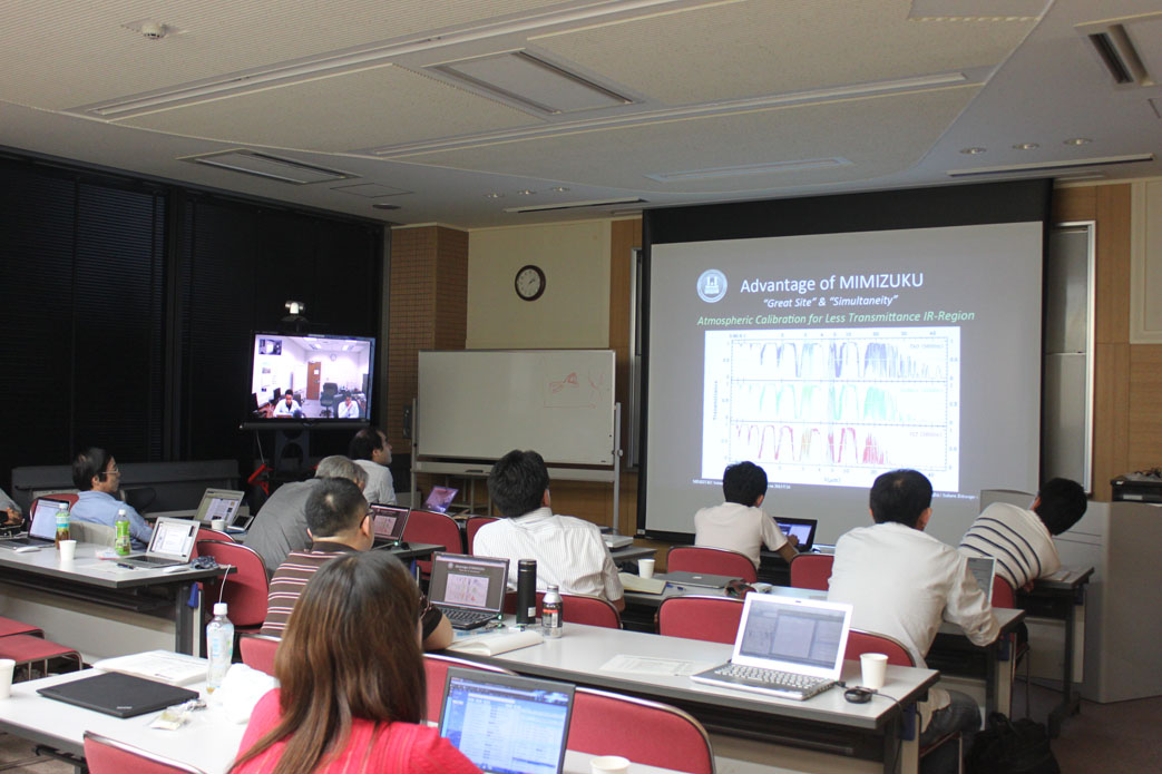 ハワイからの講演も含め、16件の観測提案講演がありました。また、30ミクロン帯を観測できるサイトは数少ないこともあり、休憩時間には活発な議論が各所で交わされていました。ワークショップの模様はテレビ会議で多局中継され、日本国内外から約40名の方にご参加いただきました。