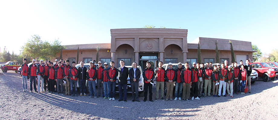 トヨタ自動車南米大陸走破隊 TAO登頂翌日の2016年10月13日には、トヨタとTAOメンバーの総勢42名、13台の隊列でTAOのあるチャナントール山に向けて走行しました。登頂の途中、トヨタでは走行保証の範囲外としている5000mを超えた地点でトヨタのRAV4が酸素不足のため停止するハプニングがありましたが、その他高山病等のトラブルも無く無事に走行を終えました。その後、南米走破隊はサンペドロを出発し、次の目的地であるアントファガスタ方面に出発していきました。