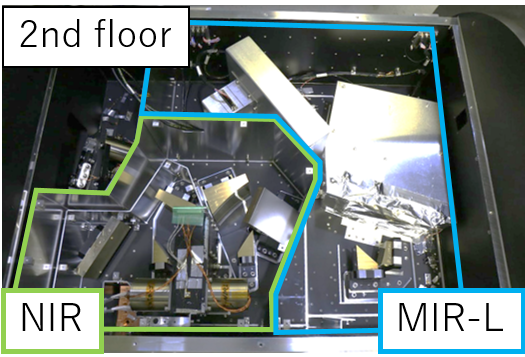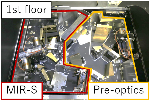 MIMIZUKU本格観測に向けて日本で調整中TAO6.5m望遠鏡に搭載予定の中間赤外線観測装置MIMIZUKUは、2018年に国立天文台ハワイ観測所のすばる望遠鏡で試験観測を行いました(詳しくはこちら)。この観測により、天体の光を初めて観測する「ファーストライト」を完了し、一つの開発のマイルストーンを達成しました。しかし試験観測の際に開発を完了したのは、波長7-26ミクロンの中間赤外線を観測するMIR-Sと呼ぶ光学系だけでした(図1)。MIMIZUKUはこのMIR-S以外に、近赤外線(波長2-6ミクロン)を観測するNIR、長波長中間赤外線(波長24-38ミクロン)を観測するMIR-Lという光学系が搭載されており、これらが完成することでMIMIZUKUの特長である広い波長帯の観測機能が実現します。この機能の実現によって、恒星などの高温天体(数千℃)から、その周囲に存在する多様な温度の固体微粒子(ダスト;およそ-200から1000℃)まで、多様な温度の物質が放つ赤外線が一つの装置で観測できるようになり、MIMIZUKUが目指すダストの形成・成長の過程、あるいは惑星形成過程などの時間変動現象の観測的研究が可能となります。このため、残るNIR・MIR-Lの開発を完了することは大変重要です。
