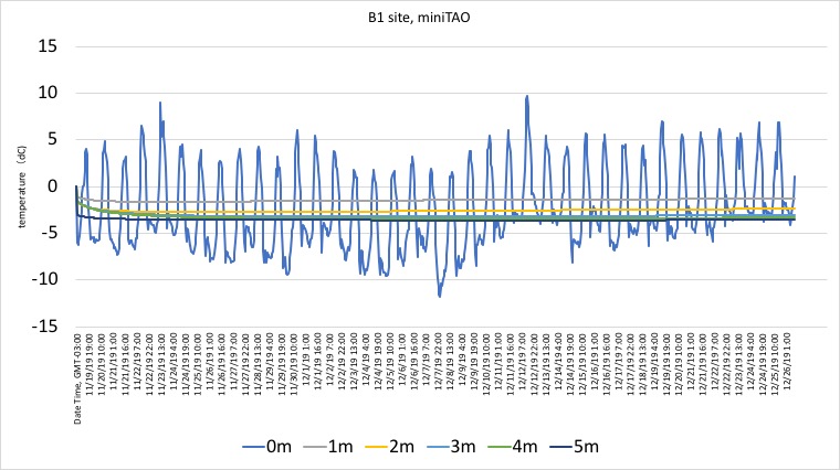 チャナントール山の凍土調査そのような状況を鑑みて、TAOではチャナントール山の凍土の状況を把握するための地質調査が行われました。5000m付近から山頂までの道路工事で掘削された岩石や壁面の詳細検分を行ったり、山頂でボーリングを敢行、土壌サンプルを取得し、地中のどの層に氷がどのくらい含まれるか(含氷率)を調査するのです。特に山頂では望遠鏡ピア部分を中心に10数カ所、地下10数mのコアを取り出し、地層の精査を行いました。また、地表から地下深くまでどのような温度分布になっているかも重要な情報です。深度による温度分布がどのようになっているか、場所によってそれがどう違うか、またその温度分布の日変化・季節変化を追うことで、土壌での熱収支を推定することができます。