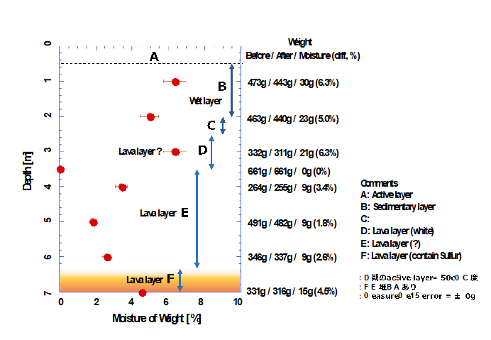 ところで興味深い発見として、ちょうどエンクロージャーの真ん中辺りを境に、西側の一部に細かな氷を大量に含む粘土質の湖底堆積層(厚みは2m程度)が見つかりました。これは過去にそこに水が溜まっていたことを示しています。今回の調査で、過去のチャナントール山の歴史の一部を垣間見ることができたことも成果の一つと言えます。 チャナントール山頂は凍土研究において世界的にも貴重で興味深いサンプルフィールドであり、長きに渡ってTAOが運用されることから地球温暖化モニターとしても有用です。その他にも、新しい調査・観測によってこれまで見えていなかった地下の様子が多く明らかになりました。新しい事実がわかってくるという面白さは、天文学を含むあらゆる自然科学の研究に共通する醍醐味と言ってよいでしょう。 今回の調査では、凍土研究の世界的な権威であるアラスカ大学の吉川謙二教授に凍土の基本や世界の凍土事情の講義、実際の調査におけるボーリング実施時の指導、土壌改善の施工方法の指南に至るまで、多大なご協力を頂いています。この結果は、共同研究として今後極地環境における観測所設置の参考資料にするべくまとめていくことになっています。