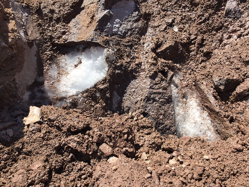 チャナントール山の地質調査〜凍土の存在に迫る〜建築物と凍土凍土層は建築を行う上で、非常に厄介な存在です。例えば、高緯度地域のシベリアやアラスカには広く凍土層が広がっており、その上に街が拡がっている地域があります。そのような街では、大きな建築物の重さや熱、外気による冷却効果の低減により、直下の凍土が溶け、建物の基礎が歪んだり傾いたりすることがあります。最近では温暖化が原因で凍土層の融解が進み、そのような被害が起きているという説もあります。これは正確には、凍土層の熱収支が崩れることで発生する現象です。建物がない場合は(或いは気温が低いままだと)、地上の冷気で地中も冷やされますが、凍土層の上に建物が建てられることで寒い時期(あるいは夜)に冷やされる効果が減り、逆に建物で発生する熱が地中に伝わります。つまり凍土層にとって熱的にはプラス(熱の過剰状態)になり、いずれ凍土層は融解していくのです。そのような場合は、ヒートポンプを設置して、地上の冷たさを地下に送ることで凍土層が融解しないような対策を講じたりします。このように凍土の上への建設は事前の詳細な調査が必要になるのです。 天文台建設場所としてのチャナントール山の特徴天体望遠鏡はその架台がしっかりと大地に設置されている必要があります。特に大型望遠鏡になればなるほど、土台設置の強度と精度が必要になります。また望遠鏡だけでなく、TAOの設備として望遠鏡を格納するエンクロージャーや観測運用棟は大きな建造物になるため、しっかりとした地盤でなければなりません。そのため、山頂がどのような地質の地層になっているか、その厚さはどうなっているのかという情報は、長期にわたって運用する観測所にとって、建築上非常に重要な要素になります。また、TAOプロジェクトでは主鏡や蒸着チャンバーなどの大型物品を山頂に運ぶため道路拡張工事を行なっていますが、その途中には凍土層そのものや凍土由来と思われる氷が多く露出しています。これらを軽視して道路拡張を行うと、わずかな熱環境の変化でも長期的に見ると、土壌や壁・道路の崩壊を招く危険性があります。 TAOやALMAは南緯23度と南回帰線直下にあるものの、望遠鏡が設置されるチャナントール山頂は5600mを超える標高です。冬季は登頂を拒む積雪もあります。そのため、地盤の中に氷の層が存在する可能性が指摘されました。世界各地の大型望遠鏡に目を向けると、永久凍土の上に建っている天文台はなく、TAOは非常にレアケースであると言えます。世界有数の観測サイトである標高4200mのハワイ・マウナケア山頂でも、天文台設備の直下には凍土は存在しません。