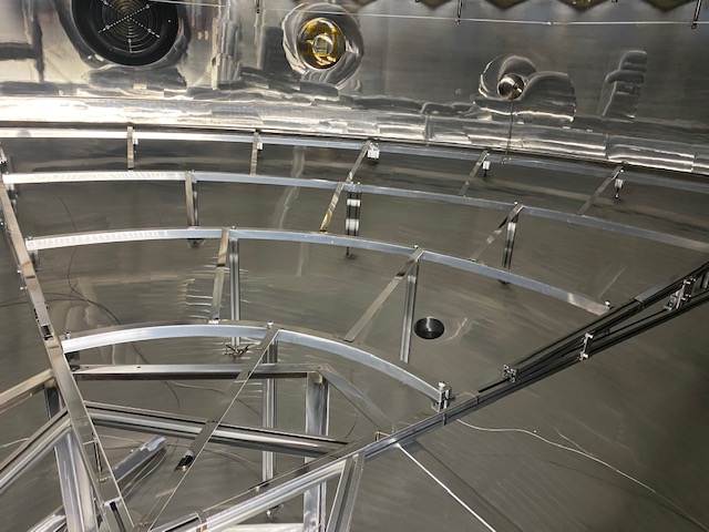 この試験の後、蒸着プラントは解体・梱包され、チリに向けて出荷されました。約1ヶ月の船旅を経て、無事にチリに到着、現在はチャナントール山麓5000mベースとカラマの倉庫に分けて保管されています。観測運用棟の完成を待ってから、他に開発された洗浄装置設備とともに、いよいよ山頂への設置へと進みます。その後は遂に宇宙からの光を集めるべく、6.5m主鏡への蒸着を開始します。