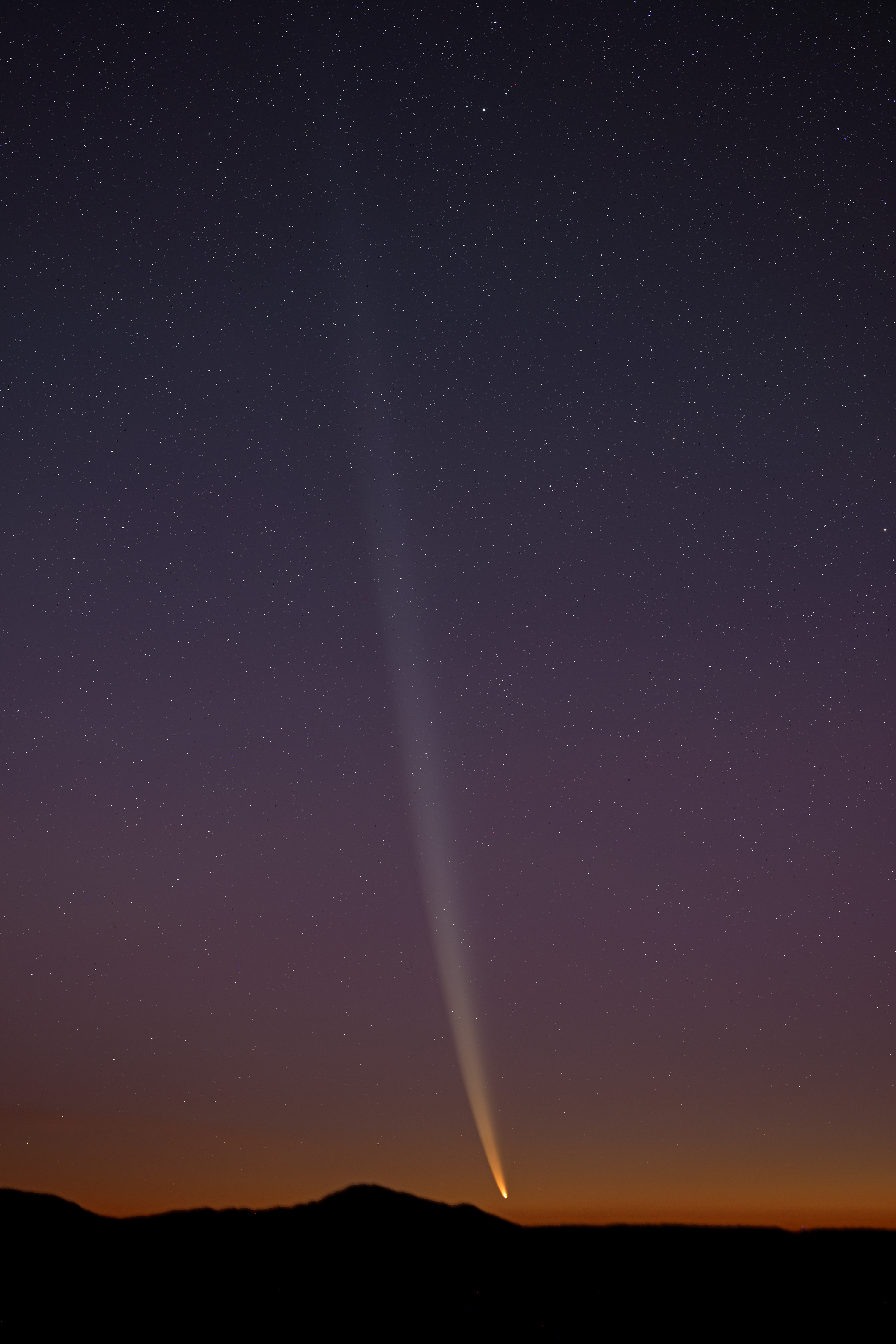 この日は低空まで雲が無かったため、地平線から彗星の核が昇ったばかりのタイミングで撮影をおこないました。極低空であっても彗星は明瞭に観察でき、高い標高による天体観測の利点を大いに感じます。