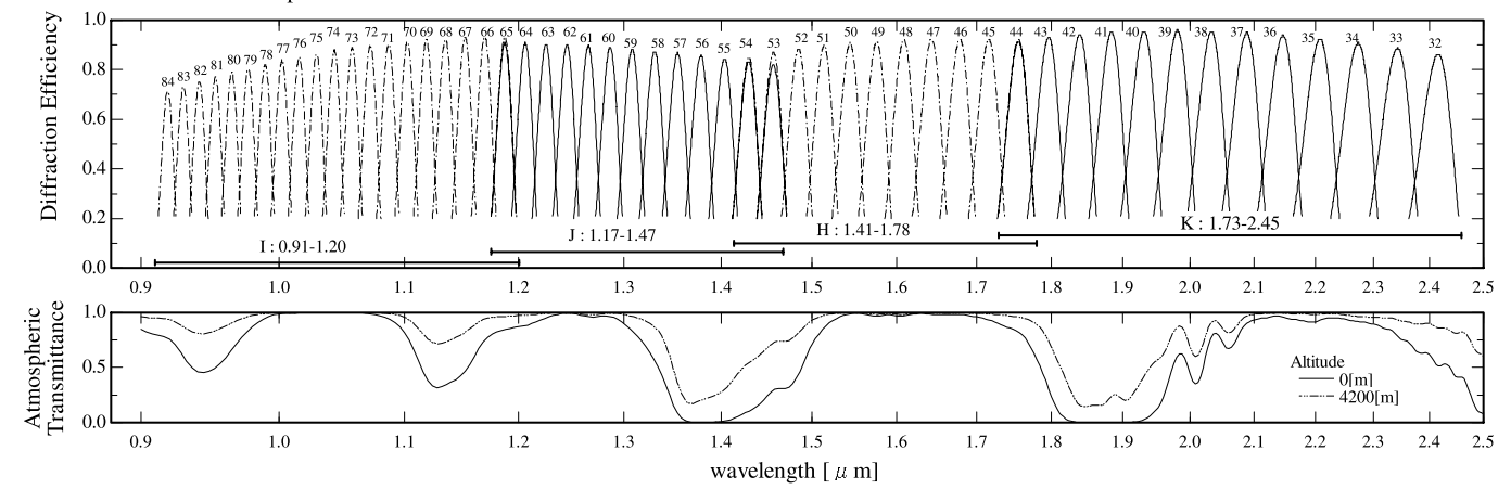 | Cross disperser (lines/mm, braze angle in deg) | CD-J (400, 13.90), CD-H (300, 14.60), CD-K (150, 8.63), Mirror, Dark |