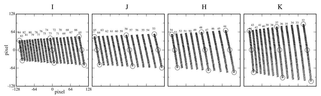 - The panels correspond to the circle positions in the echelle format diagram shown below.