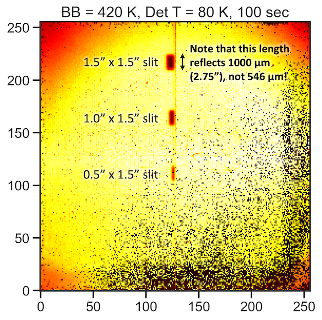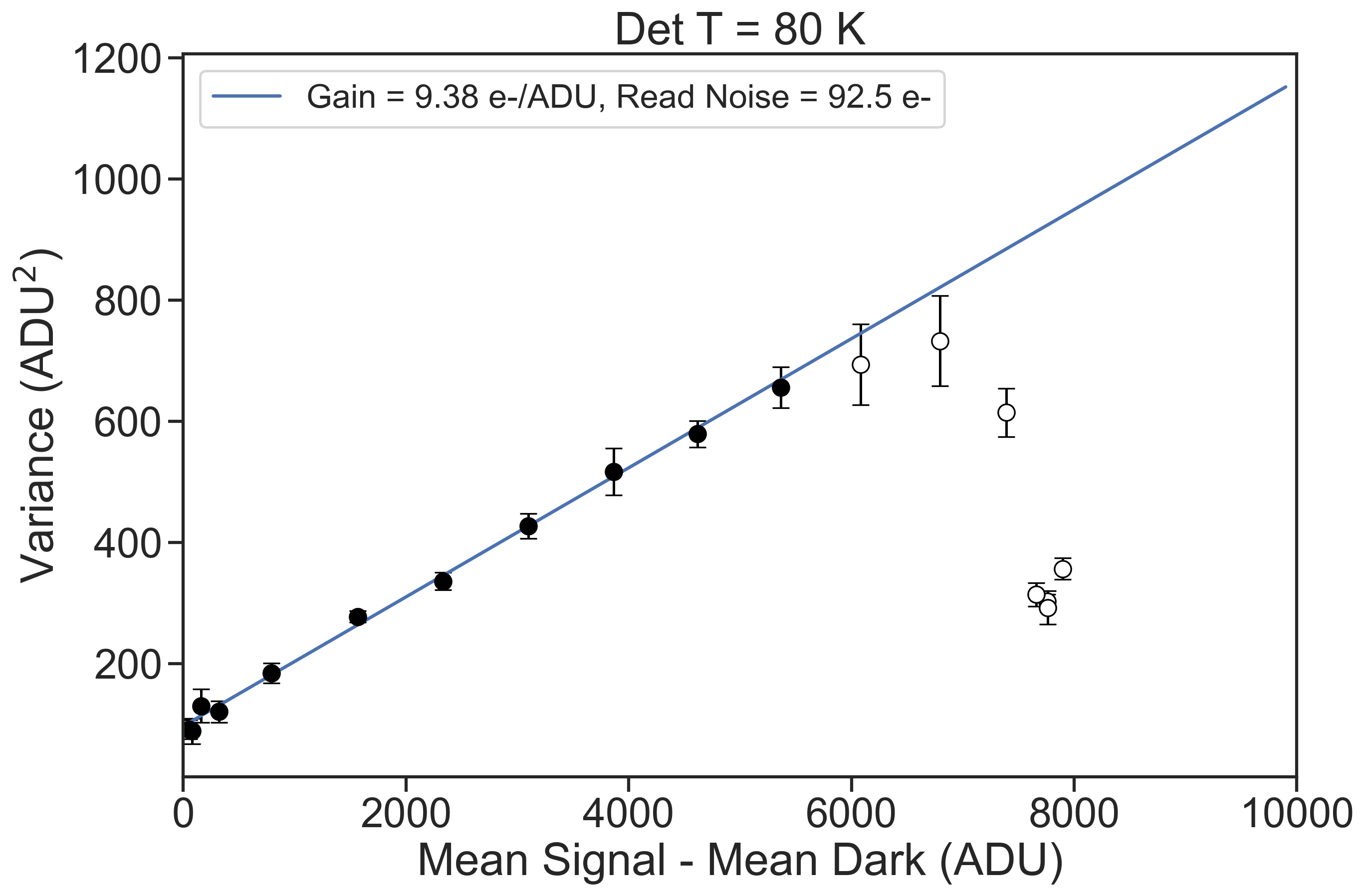 - The detector gain and readout noise were measured using blackbody furnace imaging data obtained by varying the integration time.