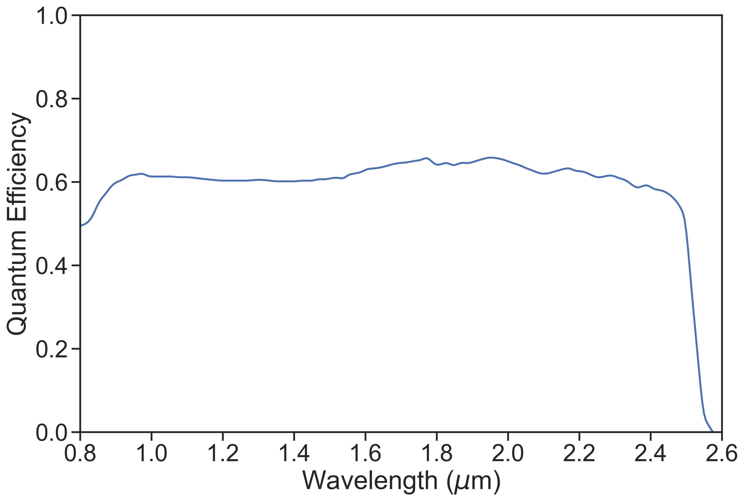 - We have not measured the quantum efficiency, but the values measured by the 2MASS project, which also employs NICMOS-3, are shown in the figure below.