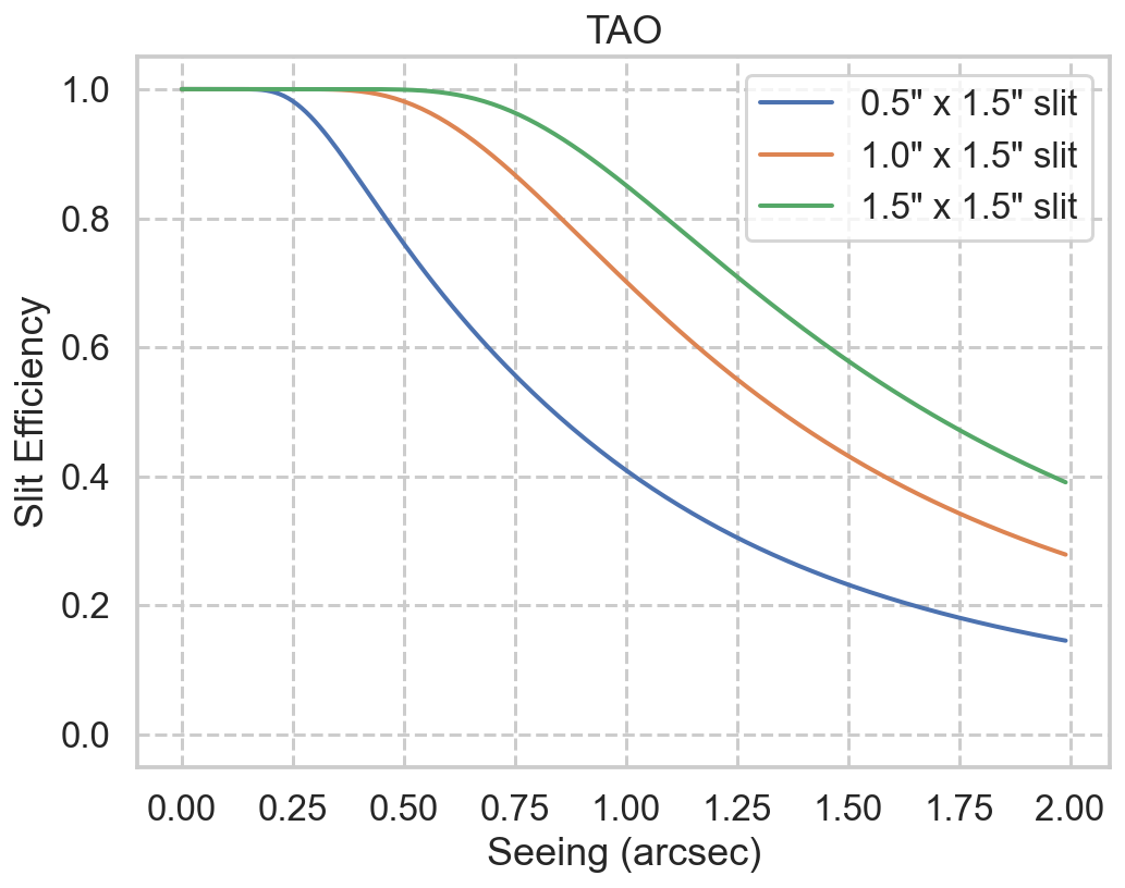 - In the calculation, a point source with flat SED, 0.5” x 1.5” slit, and seeing = 0.7” are assumed.