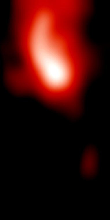 なっているため、波長30ミクロンの中間赤外線でしか長く伸びた構造は見られません。